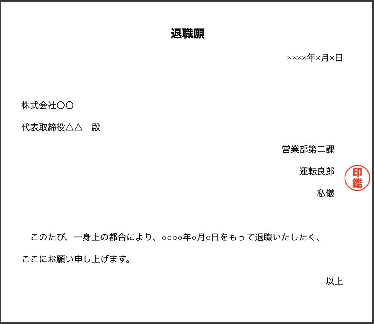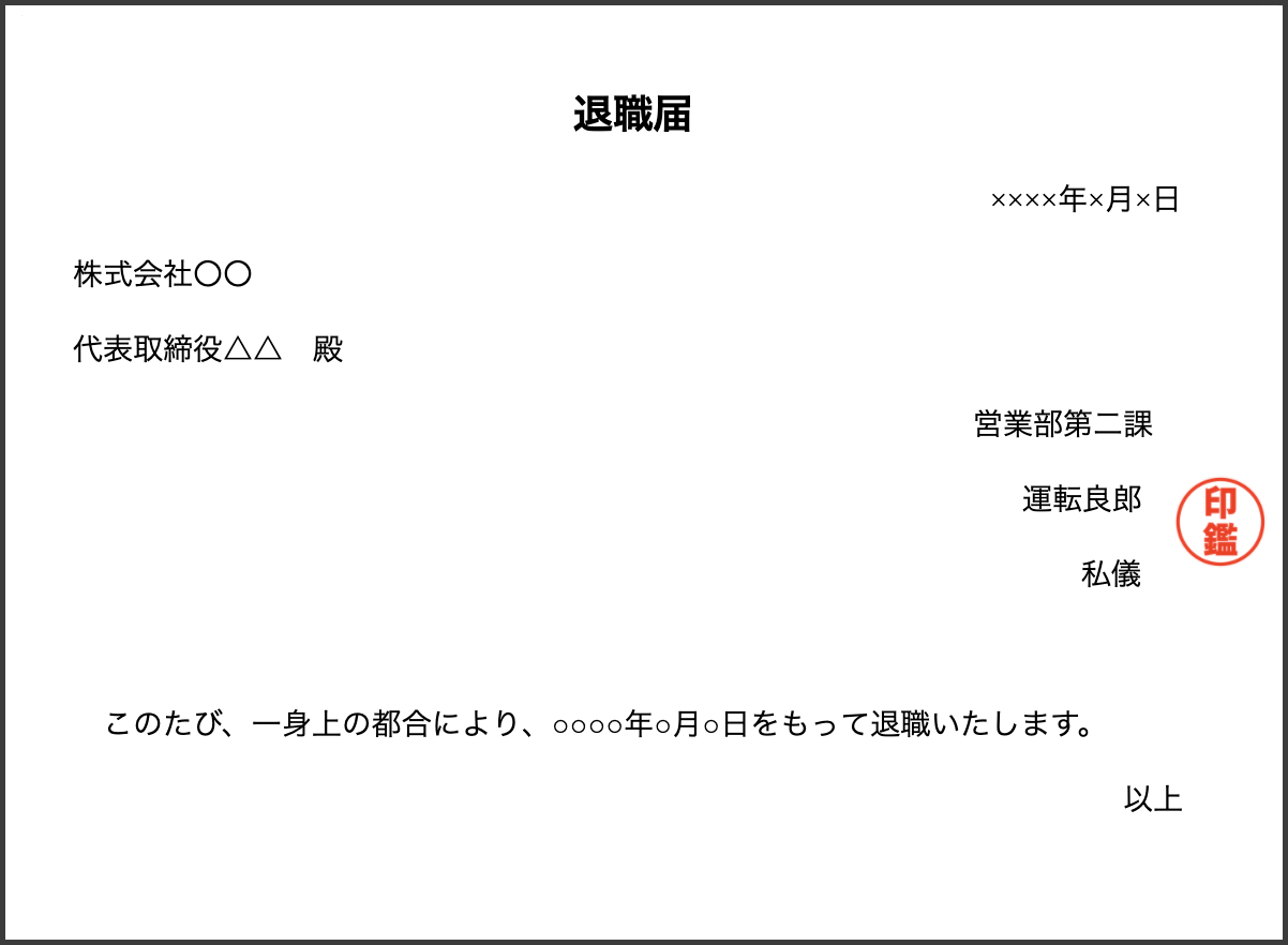 自己都合による退職ならば、「一身上の都合」と書いていれば問題ありません。