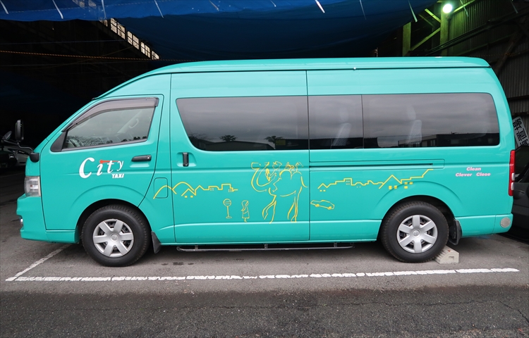 ▲最大9人乗りのジャンボタクシーです。主に観光タクシーとして活躍しています!