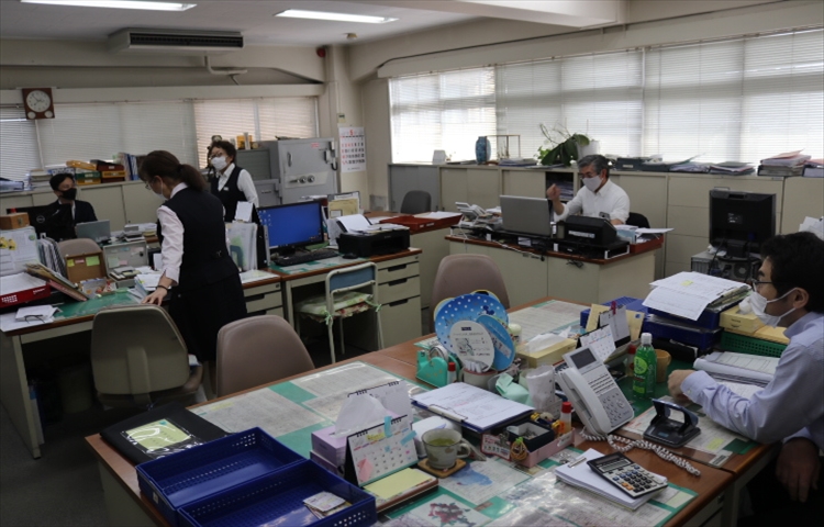 ▲こちらが事務所の様子。ドライバーさんの日報整理や計算・入力などを行ない、ドライバーさんを支えます。来客対応や電話対応など、会社の顔として活躍してくれています!