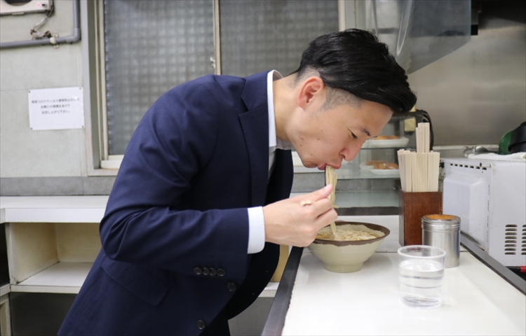 ▲さ~て!まずは腹ごしらえだ!やっぱり朝と言えば立ち食い蕎麦だよね!