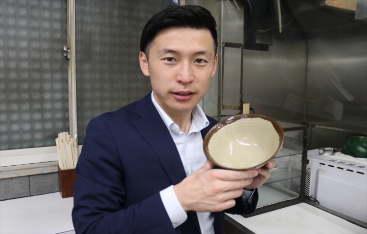 ▲あー!もう最高!朝の体に温かい月見そばが染みわたりますよ!