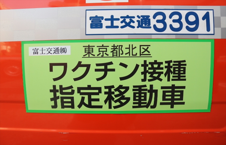 ▲高齢者をワクチン接種会場まで運ぶ「指定移動車」。東京都北区が費用を出しているので、高齢者は無料で乗ることができます。このような場でのご活躍も期待できます。