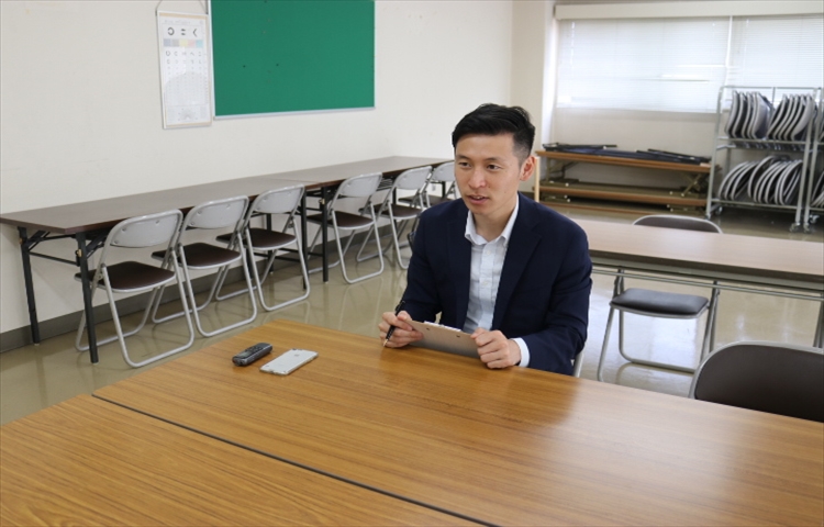 ▲経営企画室長取締役の武士(たけし)さんにお話をお伺いします!前職は、自動車の研究開発職で車が大好き!有名自動車メーカーに勤めていらっしゃいましたが、叔父が経営する富士交通に後継ぎとしてご入社され今年で4年目だそうです。それにしても、富士交通さんってイケメンが多いな。