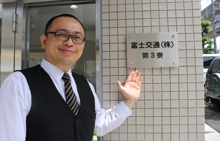 ▲「初めまして!今から、私が住んでいる社員寮を紹介しますよ!」と登場してくれたのは、入社5ヶ月、営業をスタートして2ヶ月!新人ドライバーの前川さん(42歳)です。前川さんは我がサイト「P-CHAN TAXI」を通して富士交通さんにご入社された方です!では早速寮内を拝見させていただきます!