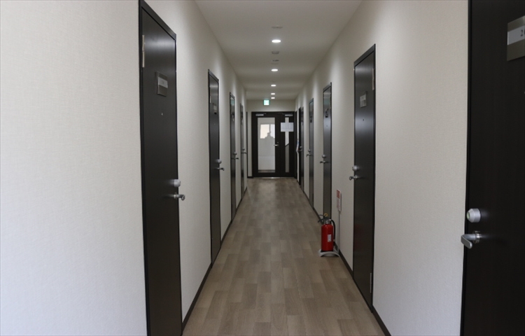 ▲廊下も壁もピッカピカ!ワンフロア10部屋の3階建て!まだまだ空きがございます!