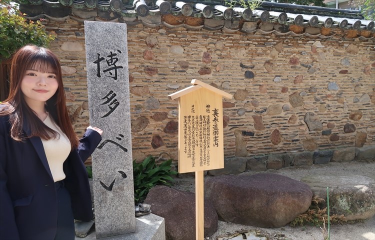 門傅さん:次にご案内するのは「博多べい」です。櫛田神社の「博多べい」は博多三傑の一人嶋井宗室の屋敷で三百八十余年の風雪に耐えた最後の「博多ベい」を移築再建したものなんですよ!