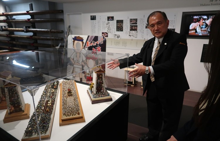 門傅さん:これは先程の神社で見ていただいた博多祇園山笠を再現した模型になっています。