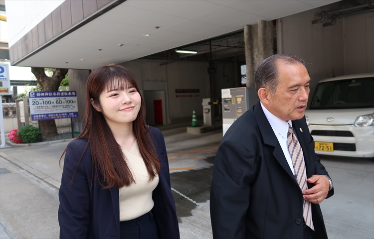 ▲お忙しい中、野上専務にお見送りいただき取材は終了です!野上社長も野上専務も、絶対にお偉い立場の方なのにそんな雰囲気を感じさせない柔らかいお人柄でした!きっと安心して長く勤められるタクシー会社だと思います!
