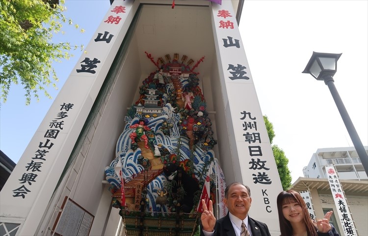 門傅さん:一番初めに案内したいのはこちらの「博多祇園山笠」の「飾り山」です!これは毎年7月1日から15日にかけて開催される山笠期間中に市内各所に建てられるものですが、ここでは一年中観ることができます。