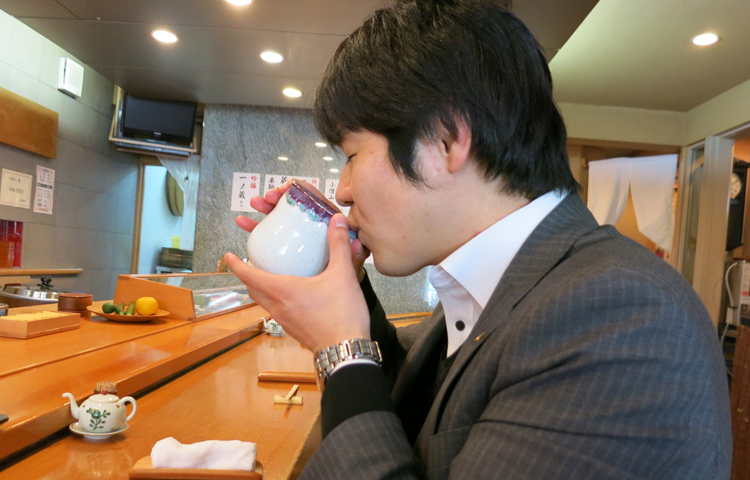 この旨さは無限に食べれちゃうので熱いお茶をいただき、大満足で取材に行くことにします!