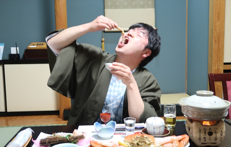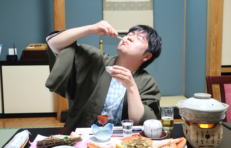 杉本社長:まずこちらの蟹の刺身を食べて下さい。時間が経ってしまうと鮮度や味が落ちてしまいますから。蟹の刺身って滅多に食べられるものじゃないんですよ。木村さん食べた事ありますか?蟹の刺身。
