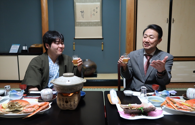 杉本社長:次は、焼き蟹や蟹の天ぷらが出てきますので、それまで少し談笑でもしましょうか!