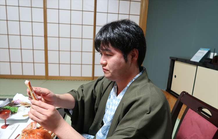 杉本社長:基本的に蟹の食べ方っていうのは、足を折って折って折りまくるんですよ。人間と一緒で、関節を折るとヘナヘナになるじゃない。それと一緒で関節の逆にポキッと折ると身が簡単に出てくるんですよ。