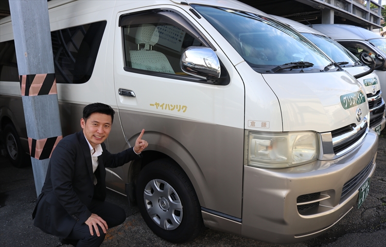 ▲こちらは大人数での移動が可能な「ジャンボタクシー」です!KGグループさんは「観光タクシー」「ジャンボタクシー」のほかにも、ドライバーさんがお買い物を代行してくれる「おつかいタクシー」や、お散歩などの外出をサポートする「おさんぽタクシー」といった多彩なサービスを展開。こうした姿勢が、お客様からの人気につながっているんですね。