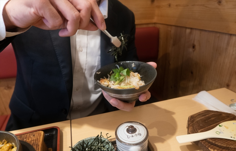 ▲お腹に余裕があったのでもう一杯注文。本日二杯目の釜飯は「しらすたらこ」です。シンプルな分、しらすの味がダイレクトに楽しめますよ♪