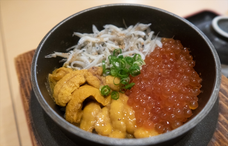 ▲メニューが豊富なのでどれにしようか迷いながら選んだのが・・・しらす三色(釜揚げしらす・ウニ・いくら)!!!メチャクチャ楽しみだなあ~~♪