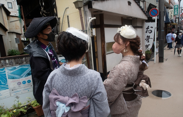 ▲素敵な着物に身を包んだ華やかな観光客!これから人力車に乗って小町通りを楽しむのかな?鎌倉の観光人気は順調に戻ってきているみたいですね♪(人力車も良いですけど、タクシーでのお寺巡りもぜひオススメしたいです!)