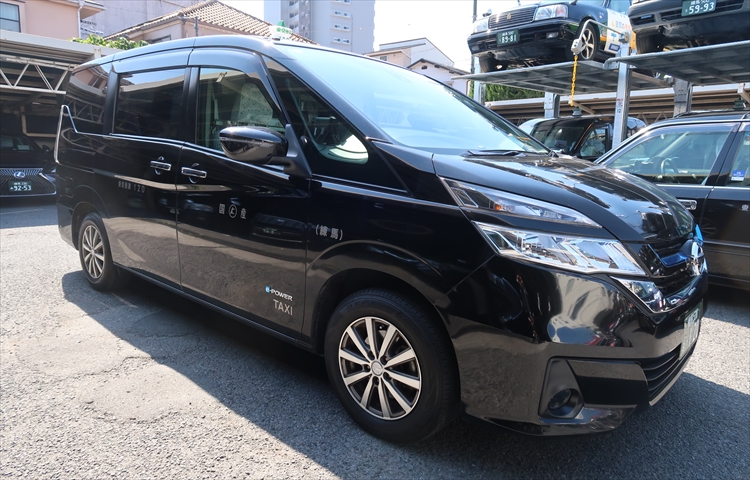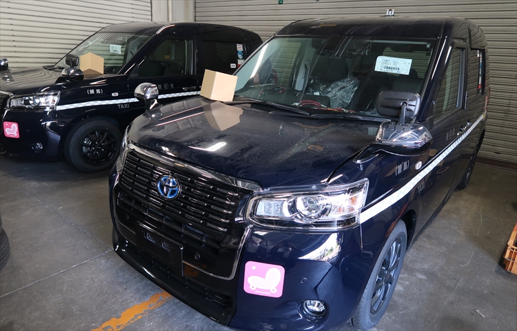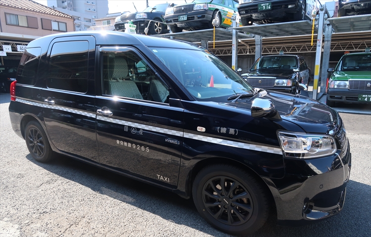 ▲こちらは今主流のジャパンタクシーです。国産自動車交通さんといえば、アルミホイールが特徴的ですね!