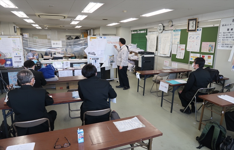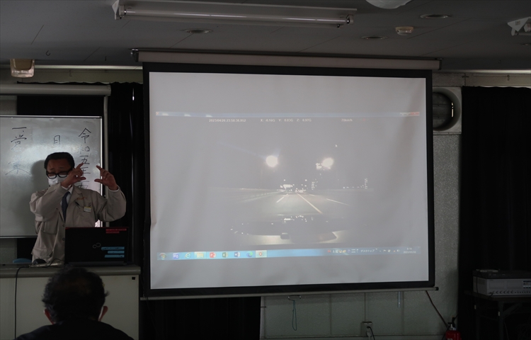 ▲この日は、実際のドライブレコーダーの映像を見ながら、事故や違反が比較的多い場所を知り、安全運転に役立てるという研修でした。