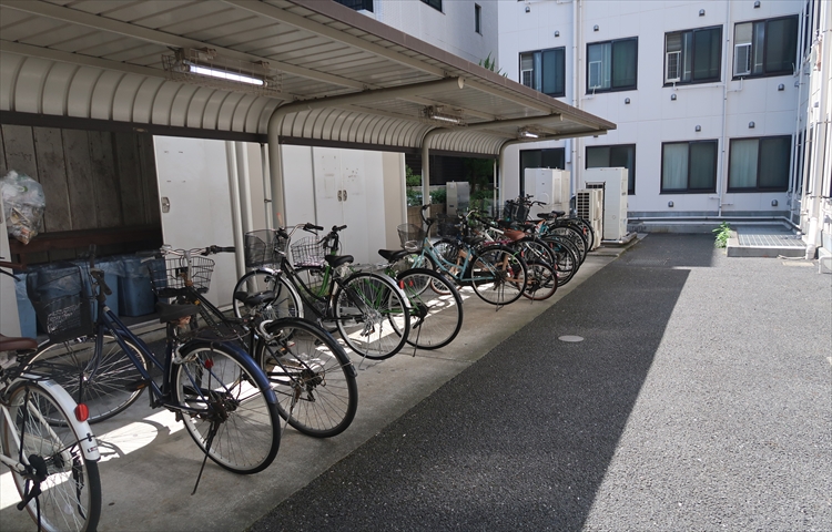 ▲こちらは寮の裏手にあります自転車置き場です。原付くらいまでなら置くことが可能とのことでした。