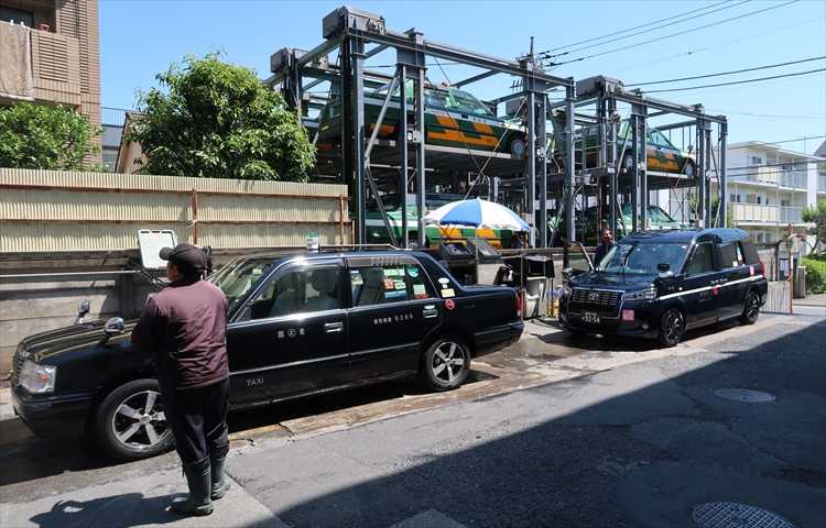 ジャパンタクシー導入に伴いハイルーフタイプの立体駐車場に入れ替えをしたとのことでした。