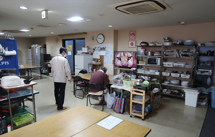 ▲こちらは地下にある食堂です。キッチン用具なども共用で、すぐに生活を始めることができます。