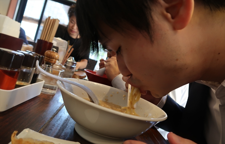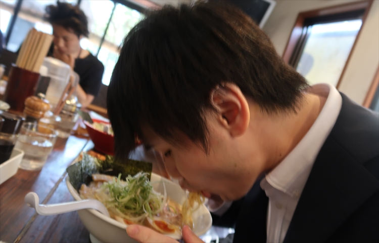 ▲作られるラーメンの脂の量に、思わず笑顔になります。
