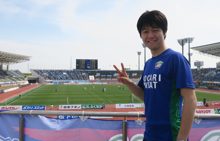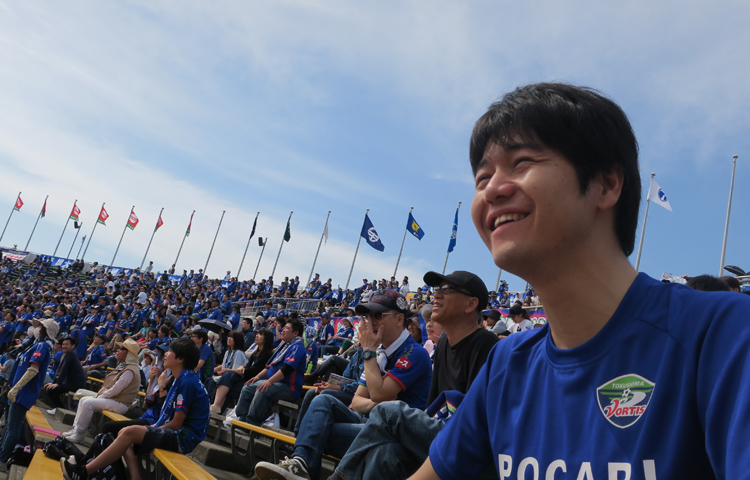 ▲徳島ヴォルティスのサポーターと一緒になり必死に応援です!頑張れ!ヴォルティス!!