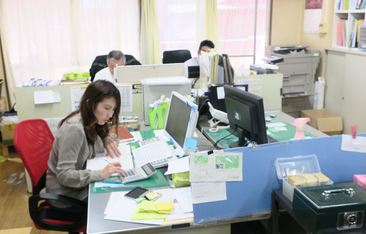 事務員さん:うちの会社はドライバーさん達も含め、みんなが家族のような雰囲気です。のびのびと働いていただけると思います。困った事はなんでも相談して下さいね!