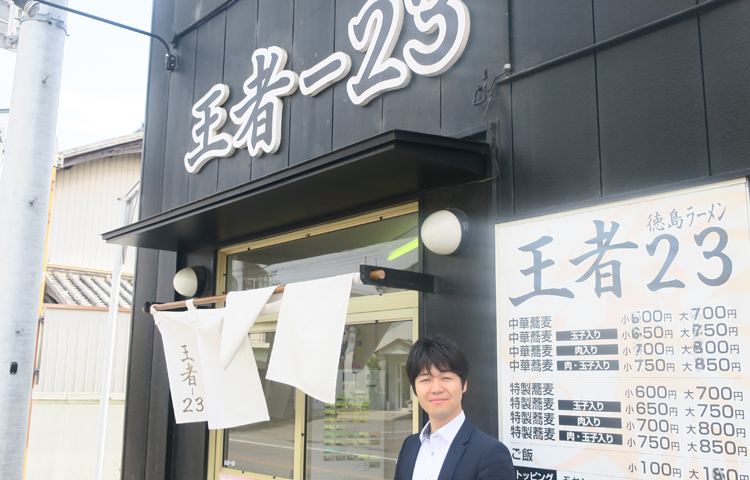 ▲連れてきて頂いたのは、徳島ラーメンの有名店「王者-23」どんなラーメンが出てくるのか楽しみです!