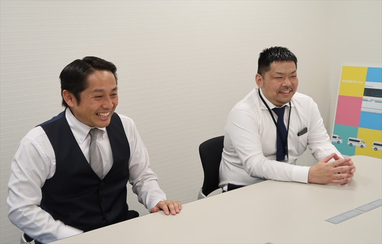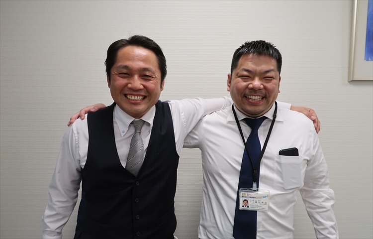 ▲河田社長(左)と横山課長(右)です!横山課長は面接担当や入社後の研修担当も行っており、ドライバーさん達と接する機会の多い管理者の一人です。