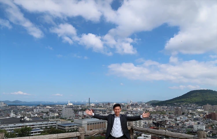 ▲坂を上り始めてから10分ちょっと。ようやく7合目付近までやってきました!瀬戸内海や丸亀市の街並みが一望できます!天気も良くて気持ち良い!