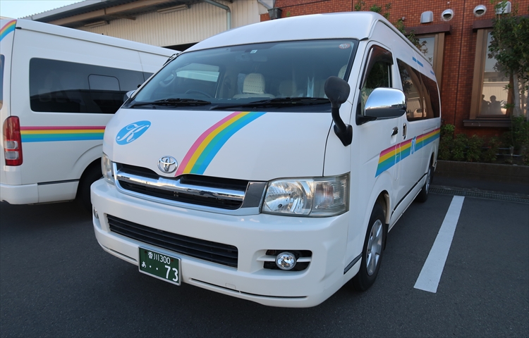 ▲ジャンボタクシーです!お遍路タクシーの際にも活躍します!レインボーカラーでいいですよねー☆