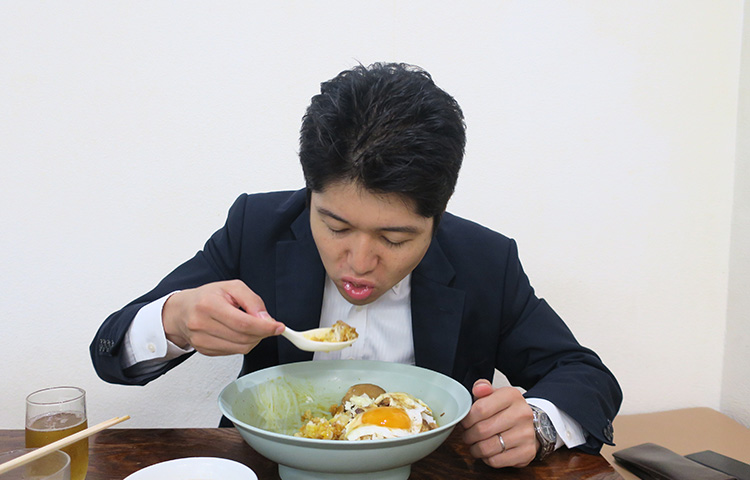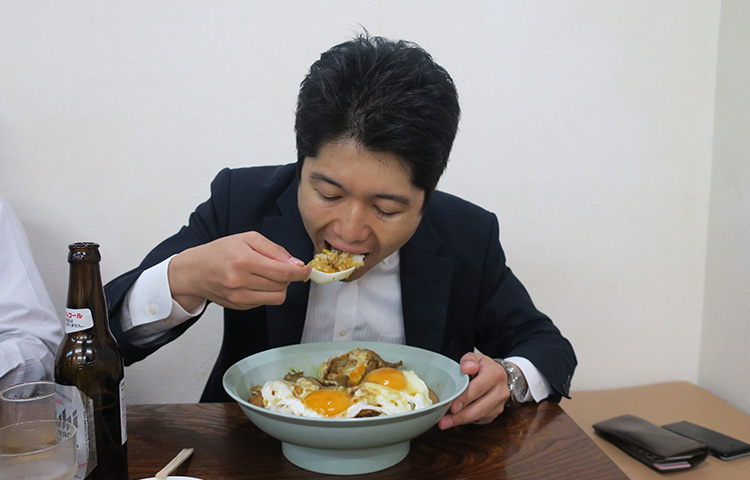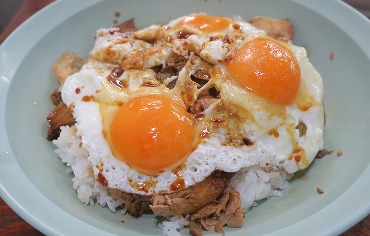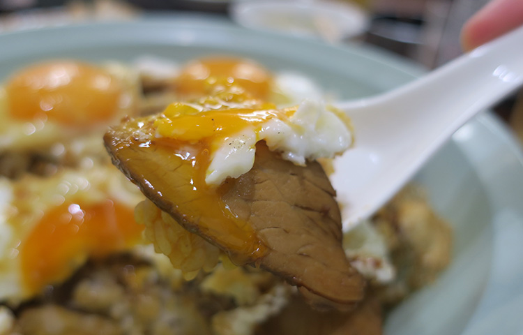 ▲特製のタレとたまごが焼豚とご飯に絡まって濃厚で、目で味わえます。