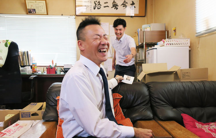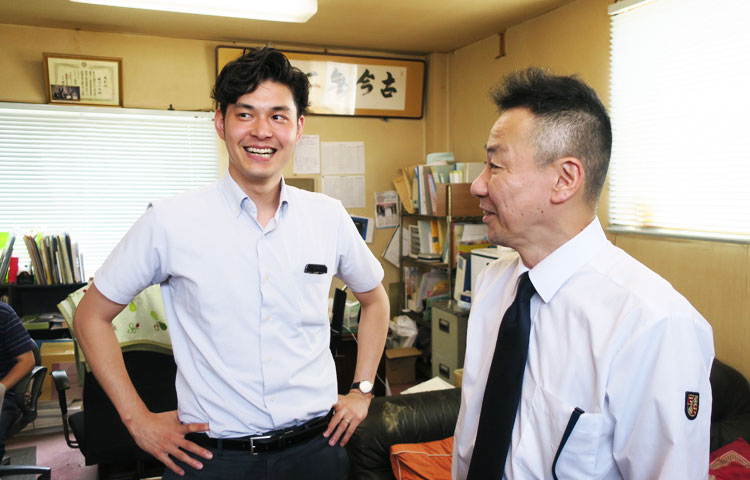 山田さん:僕は鶴田専務から誘われたんです。飲食店で働いていたんですが、専務がそのお店の常連さんで元々顔なじみではあったんです。で、僕結婚を控えてまして、相手の方には幼い子供がいるのでいきなりパパになるんです(笑)ですので、最低でも毎月20万円~25万円のお給料が必要な状況だったんで。。。その事をお客さんとして来ていた鶴田専務に相談したところ、「それならうちに来なよ!そのくらいの給料なら余裕で稼げるよ!」と。それで、鶴田専務の明るくて力強い人柄にも惹かれて、お世話になろうと決めたんです。
