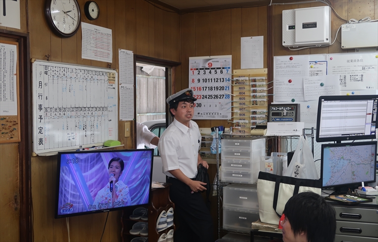 鶴田専務:おかえりなさい!彼は横田くんです。年齢は27歳で僕の高校時代の後輩なんですよ!同じバスケット部で(笑)まだ乗務開始してから3ヵ月です。