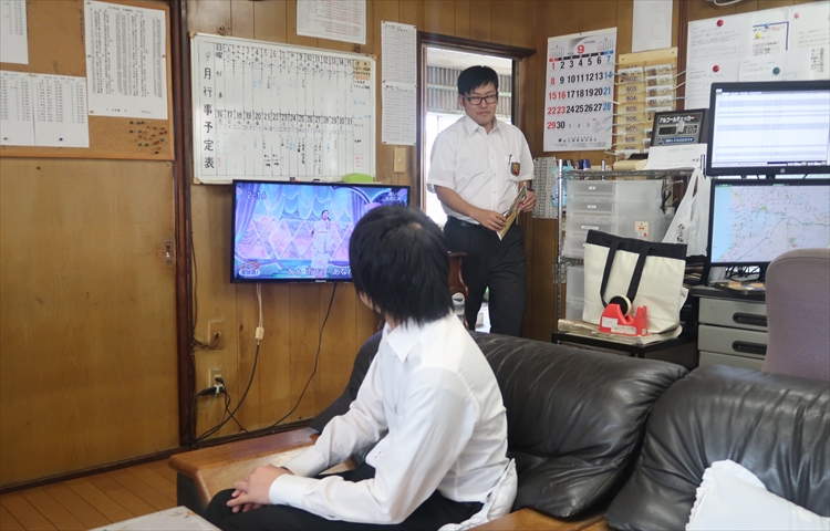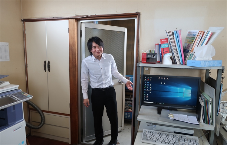 鶴田専務:彼はこれから教習所に通う予定の山田くんです。年齢は22歳で、無事に教習所を卒業できたら愛媛県最年少タクシードライバーの誕生です!山田くん!ちょっとこの後撮影の協力をして欲しくて。