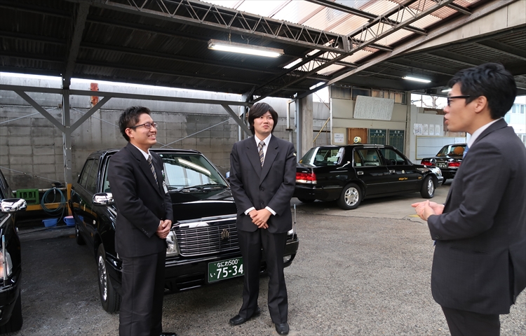 ちなみに、こちらの若い男性乗務員2名は、23歳と27歳です。そして専務も27歳!若い世代もどんどんタクシー乗務員にチャレンジしている時代なんですね。