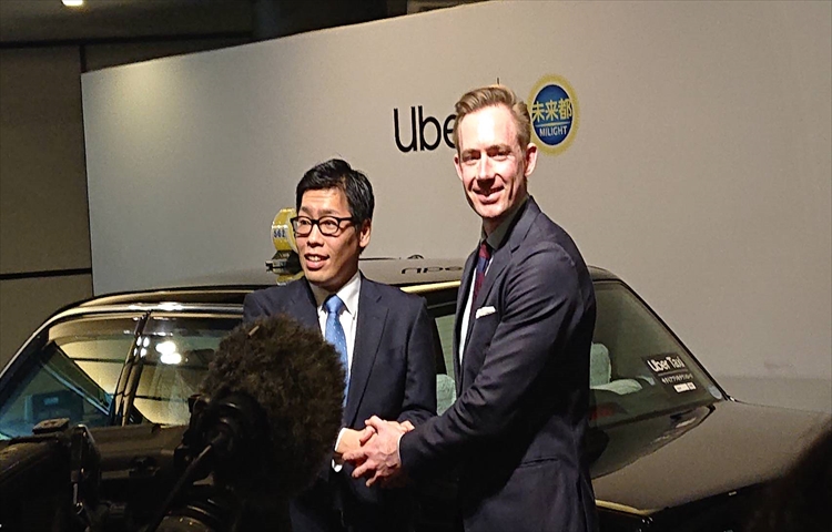 ▲2019年1月、大阪府初となるUberとの業務提携を結んだ時の記者会見の模様です。