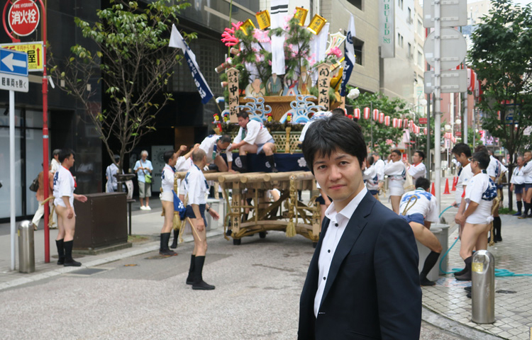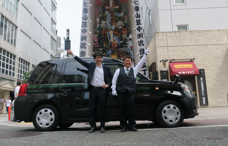 そこに当社の観光ドライバーである増田を待機させていますので、山笠をご覧いただいた後は、増田と合流して観光ドライバーの仕事を体験取材してください。