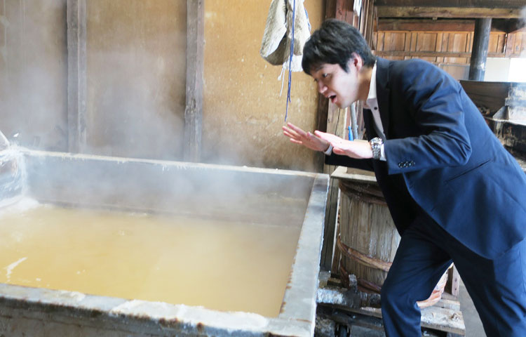 ▲なんと60度で2日間煮詰めて塩が完成するようです。写真では伝わりにくいですが、かなり熱いです!!滅多に見る事のできない貴重な経験でした。