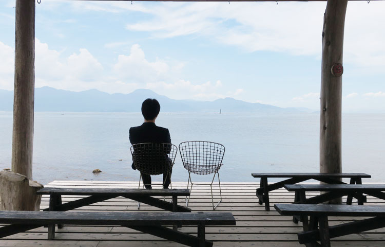 ▲視界一面に海を眺められる絶景スポットもあります。隣の席が寂しいです。