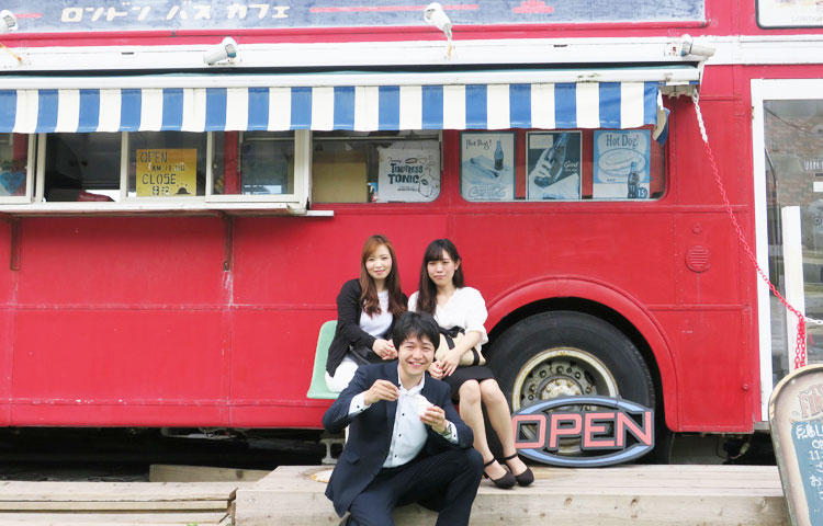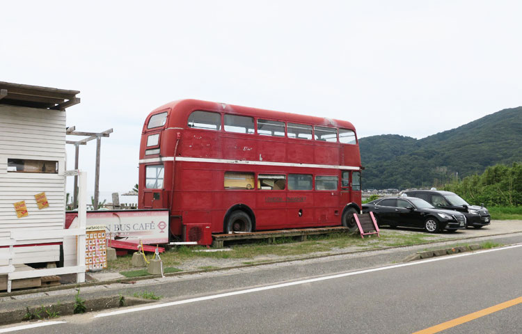 ▲「ロンドンバスカフェ」。オーナーが実際にロンドンに行かれた際に、そのお洒落な外見に一目ぼれ!ロンドンバスを買い取って自ら糸島でロンドンバスカフェを開かれたとの事。