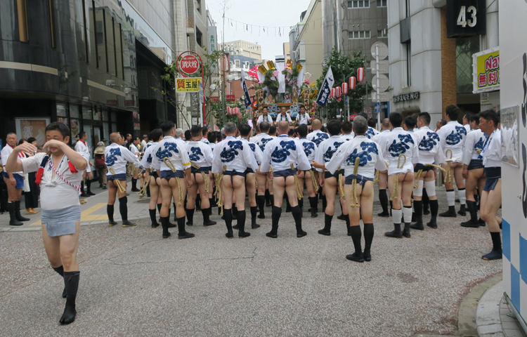 ▲ふんどし姿の逞しい男たち、いや漢(おとこ)たち。後姿からでも、ものすごい熱気を感じます。