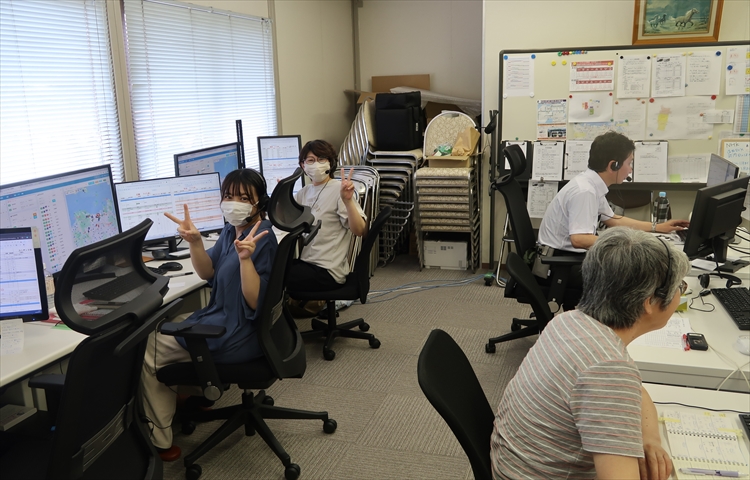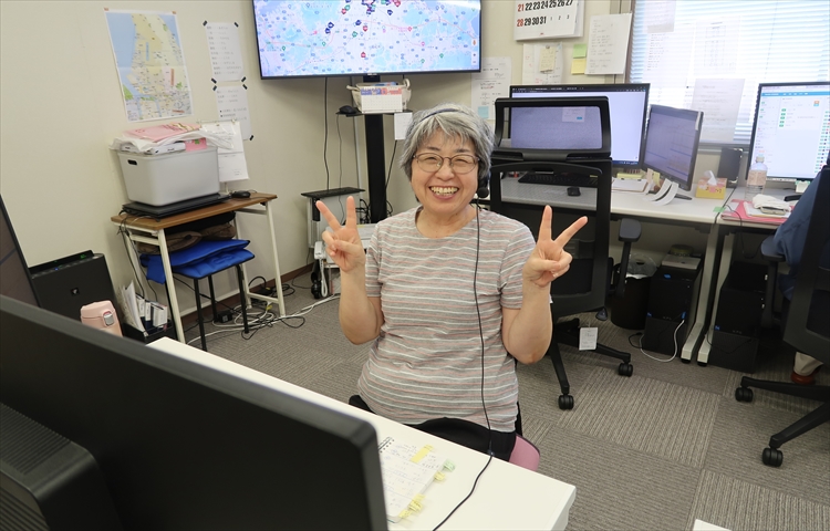 ▲こちらが新しくなった配車室です!共同配車サービスを行っています。市複数のタクシー事業者の配車を1拠点で行う仕組みを実現しており、迅速正確な配車、車両不足により配車依頼に対応できない場合に提携する他社の車両を配車する等、顧客サービス向上に取り組んでいます。撮影中も電話が鳴りっぱなしです!