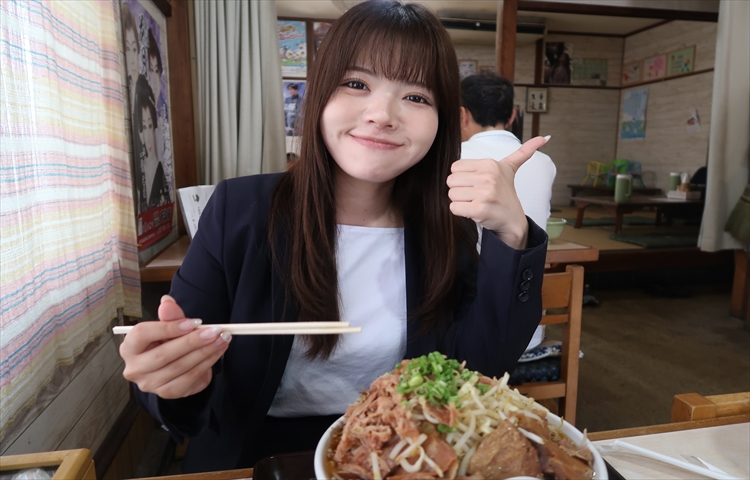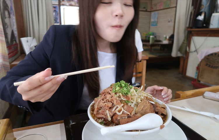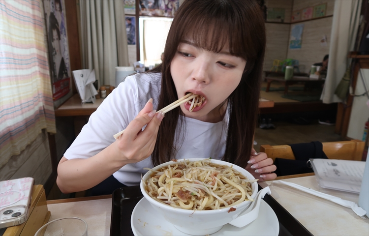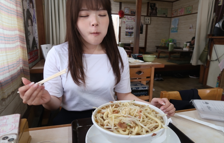 ▲ちょっとさすがに暑い!二郎系うどんを食べてると身体だけじゃなく心まで熱くなってきました!ジャケット脱いで本格的に食べます!