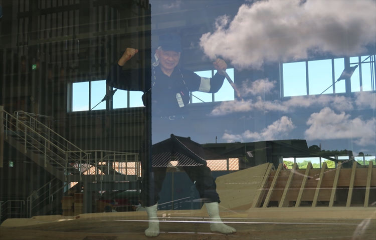 ▲復興に向けて作業する職人さん、ポーズまでいただきました。頑張って下さい!