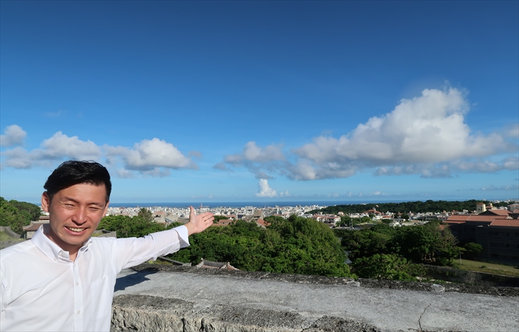 ▲首里城公園の頂上から見る景色!空も海も町も綺麗ですよね!