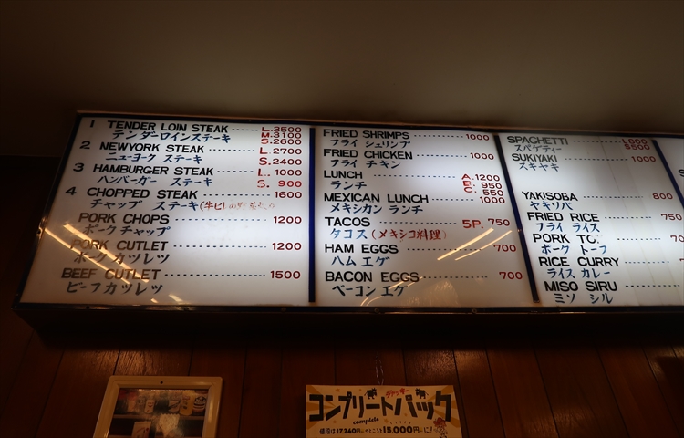 ▲メニューが豊富で迷いますが、メニュー表の一番上にあるテンダーロインステーキLサイズに決めました!