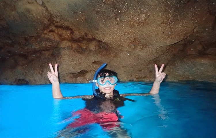 ▲沖縄本島で大人気の観光スポット「青の洞窟」でシュノーケリングです!人生初のシュノーケリングにワクワクしています✨